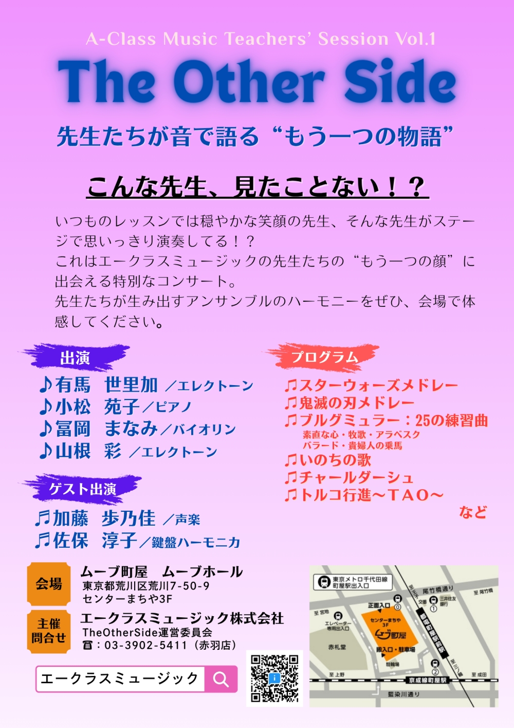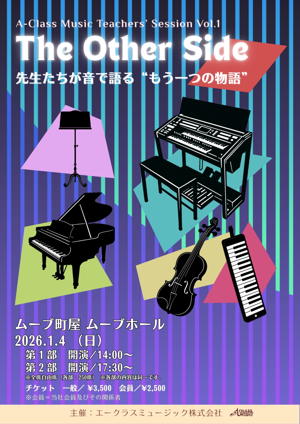 これはエークラスミュージックの先生たちの“もう一つの顔”に出会える特別なコンサート。